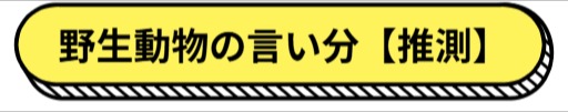 また、話し合いや交渉ができないことも、野生動物との共生の難しさの一つです。(話し合い可能な人間同士で、話し合いが実らず、醜い争いが続いているという皮肉もありますが...) 動物側から先に歩み寄ってくれることはないので、人の方から働きかけを行なっていく必要があります。